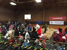 The E.M. Downer YMCA stepped up to offer a larger space in their gym, as well as providing support for the sign-ups, administrative support and smiles all around. The program went from serving over 500 families with toys and food to over 1,500 with the addition of a chance to win a donated bicycle.